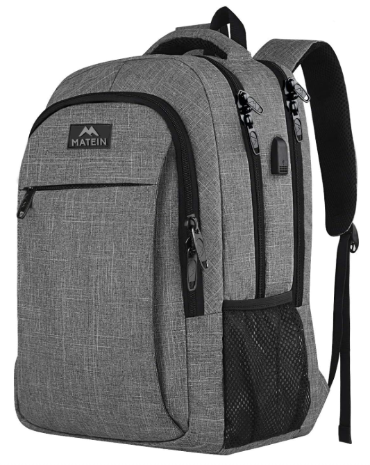MATEIN Travel Laptop Backpack, Work Bag Lightweight Laptop Bag with USB Charging Port, Anti Theft Business Backpack, Water Resistant School Rucksack Gift for Men and Women, Fits 15.6 Inch, Grey